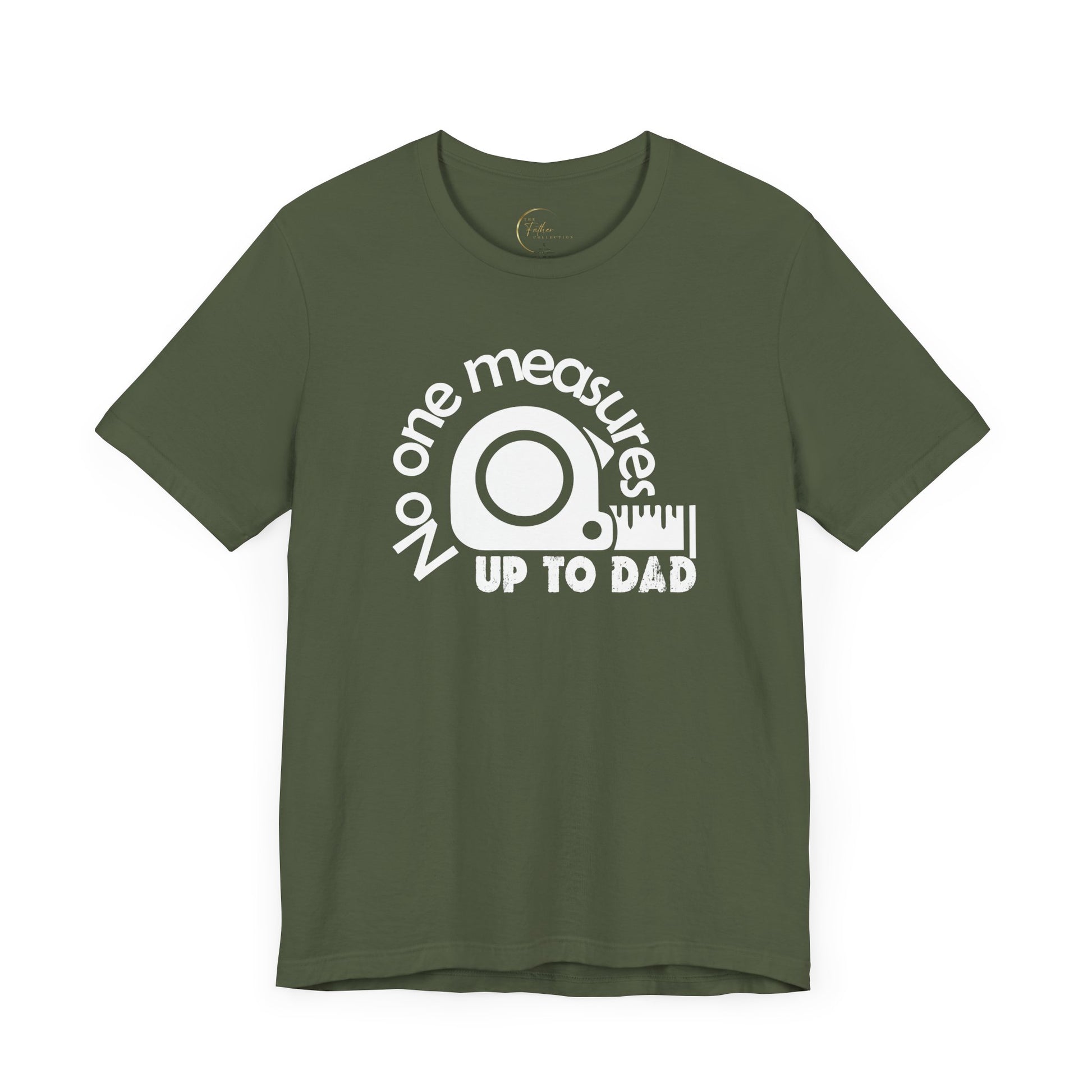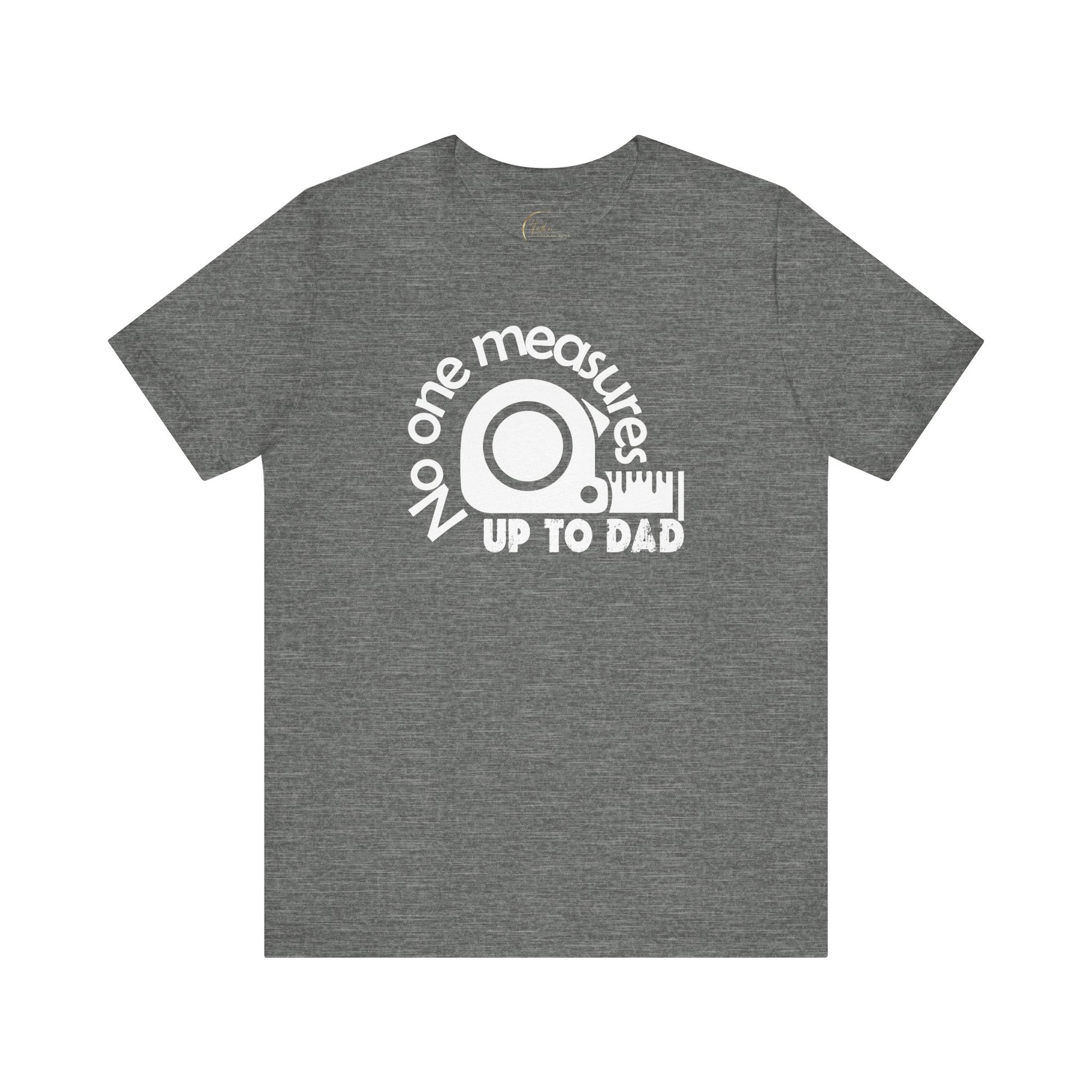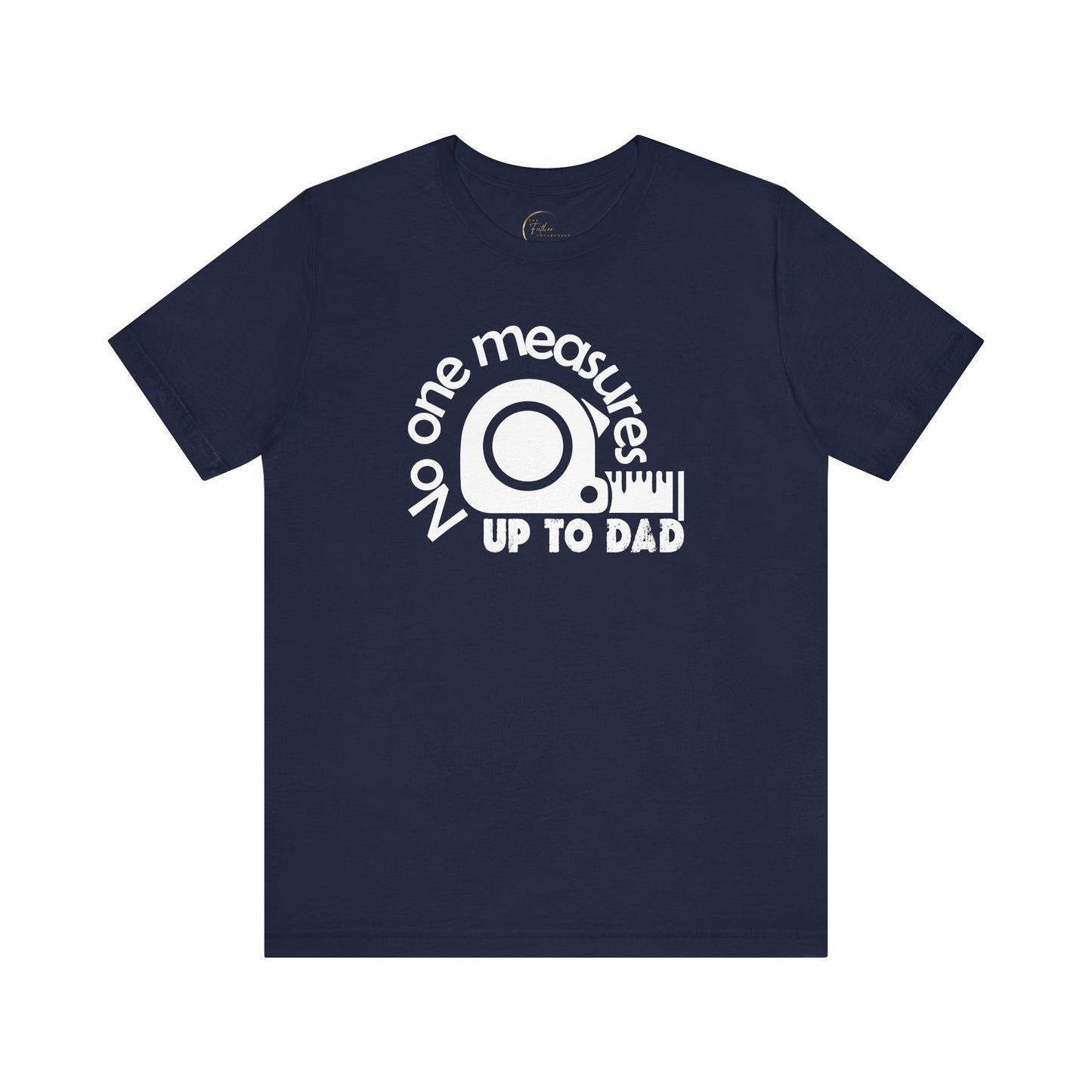 No One Measures to Dad Forget the toolbox, this is the only tool Dad truly needs. Because let's be honest, no spirit level is level enough, and that stud finder? More like a dud finder compared to Dad's instincts. This shirt isn't bragging, it's stating facts. Mic drop. Warning: May cause jealousy in other dads (we recommend purchasing multiples for the sake of family harmony). Disclaimer: Tape measure not included (but seriously, who needs one when Dad's around?).